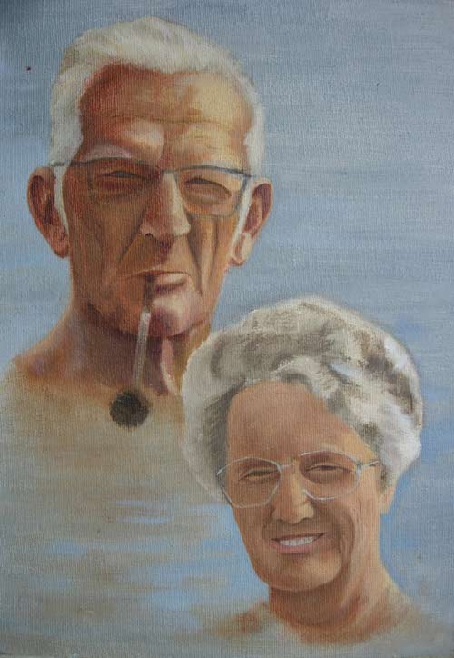 "Mum & Dad" Oil circa 1990 (25 x 35 cm) (Unfinished)